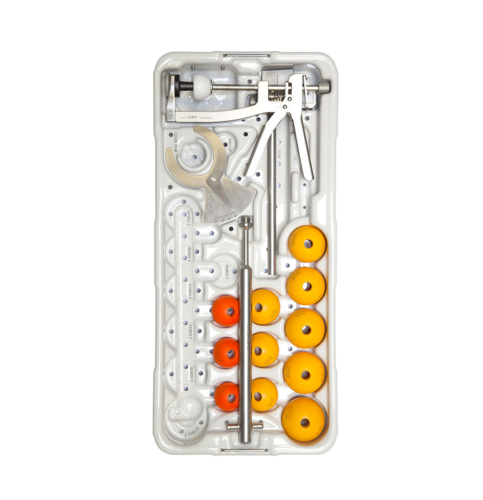 - O copo bipolar CHIBF E está disponível nos diâmetros de 39 mm a 57 mm para cabeças femorais com diâmetro de 2 mm e Ø 45 mm a Ø 59 mm para cabeças femorais com diâmetro de 28 mm.